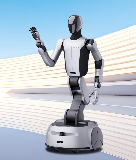优必选全尺寸通用轮式人形机器人Cruzr S2,基于仿真场景与真实数据融合的具身智能数据系统,Cruzr S2搭载第四代灵巧手精准满足分拣、零件装配等多场景、多任务的抓取需求。Cruzr S2采用对称机身设计,支持前后屈,可实现0.8m通道原地旋±170°;0-0.4m腰部升降设计,能在0-1.8m空间范围内搬运15kg重物。自研被动双目视觉系统,采用基于深度学习的双目深度估计算法,实现端到端“类人眼”双目立体视觉感知。Cruzr S2搭载学习型运动控制技术,能以2m/s速度负载平稳移动,具备坡度自适应平衡能力、沟坎跨越及高度越障能力,可进行防悬崖及防压脚自主检测,确保人机作业安全。搭载优必选自研通用人形机器人协作智能体Co-Agent