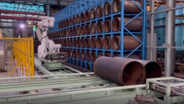 系统(YG2-WL2-30型)主要由工业六轴机器人、套筒抓手、机器人行走轨道、来料缓存架、套筒存储架、出料链板输送线、安全防护系统、 电气控制系统等组成,可实现套筒自动进出和存储,极大降低了人员劳动强度和套筒存放管理难度。 (可增配卸车功能、可拓展装车功能)。